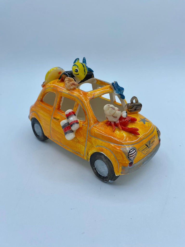 Fiato 500 in ceramica con decorazioni in rilievo in porcellana fredda, con luce LED all'interno